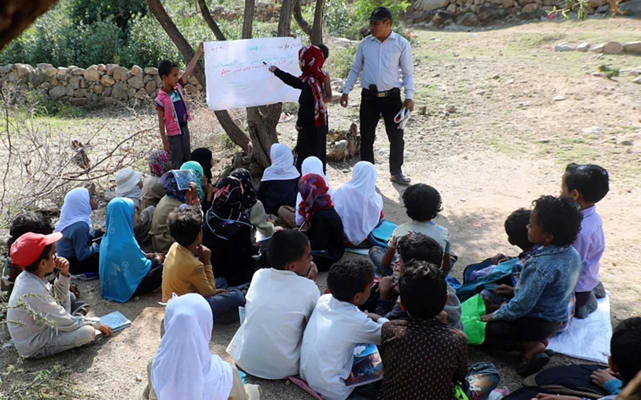 ووفق بيانات المنظمات الإغاثية الدولية، فإنّ قلة الأجور المنتظمة للمعلمين، والهجمات على المدارس والتعليم، والفيضانات واستمرار تدهور الظروف الاقتصادية، جعلت أكثر من 2.2 مليون طفل خارج المدارس في اليمن، فضلاً عن حاجة ثمانية ملايين طفل إلى دعم تعليمي لمواصلة التعلم في المرحلة الأساسية، إذ أصبح المعلمون والطلاب على حد سواء يعانون من عدم القدرة على العمل ومواصلة التعليم.