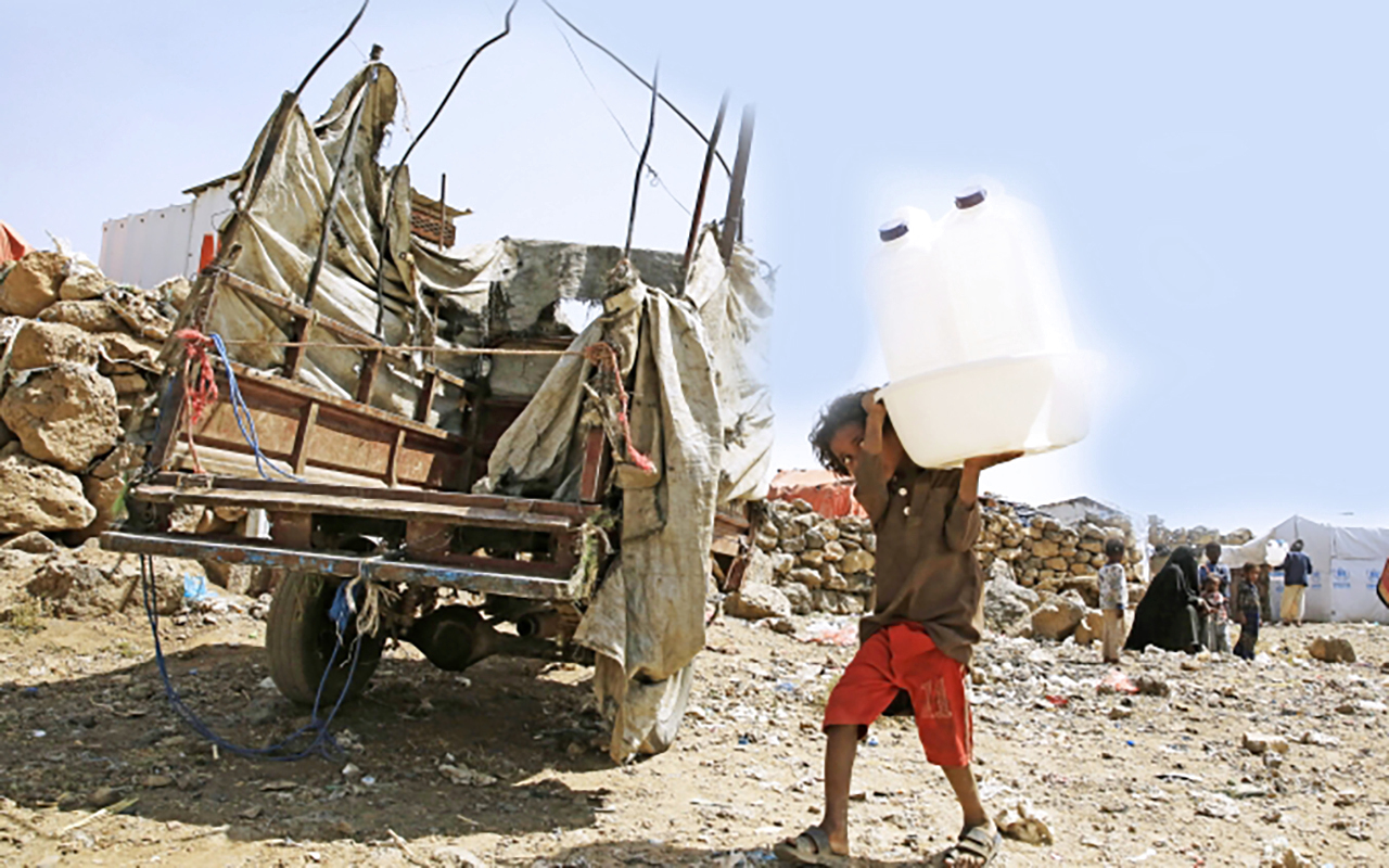 ويقول مكتب الأمم المتحدة للشؤون الإنسانية إن 17.8 مليون شخص في اليمن يفتقرون إلى المياه الصالحة للشرب وخدمات الصرف الصحي الملائمة، في حين أن شبكة المياه الحالية تصل إلى أقل من 30 في المئة من سكان البلاد. وبالتالي يحتاج الملايين بمن فيهم النساء والأطفال، إلى المشي لأميال لجلب المياه. حيث تسبب العجز في الوصول إلى مصادر المياه النظيفة في تفشي الأمراض، بما في ذلك الكوليرا والإسهال المائي الحاد.