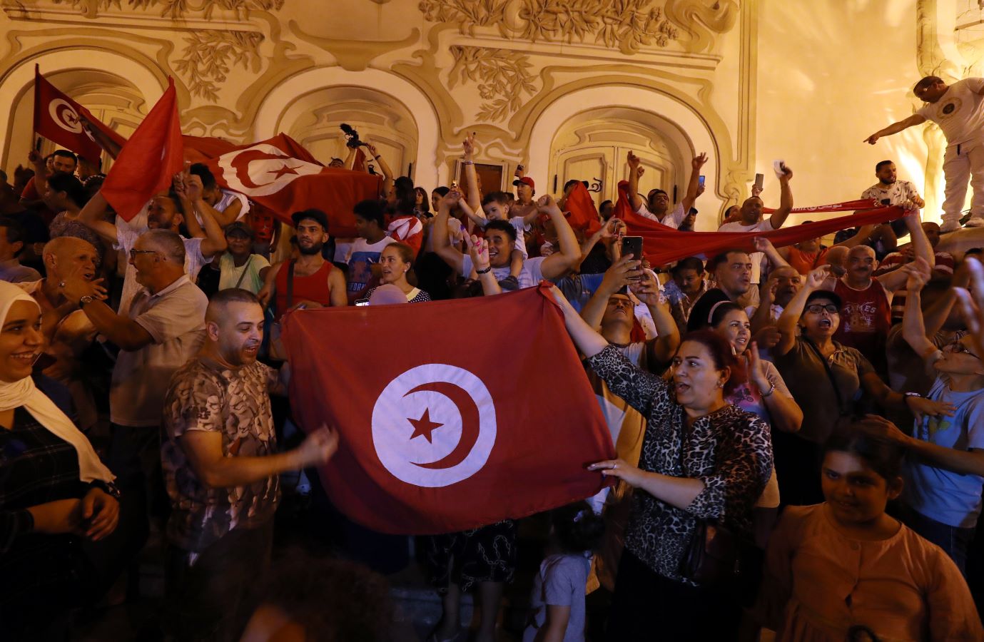 وبعد قليل من نشر استطلاع الرأي، توافد المئات من أنصار سعيد على شارع الحبيب بورقيبة بوسط العاصمة للاحتفال.