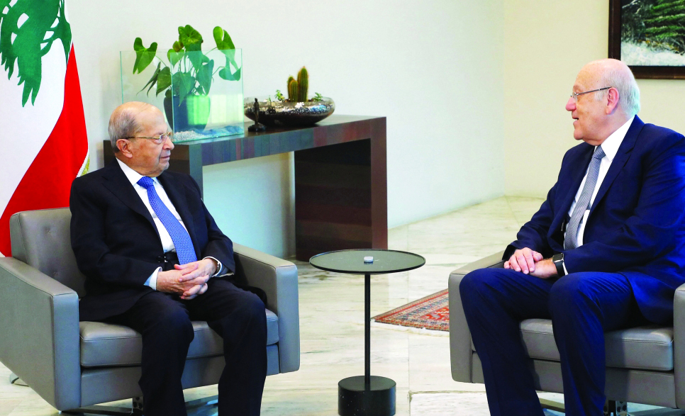اشتعل السِجال مجدّداً على جبهة التأليف الحكومي في لبنان مجدداً، وجاء هذه المرّة مباشراً بين الرئيس ميشال عون ورئيس الوزراء المكلّف نجيب ميقاتي، ما رفع منسوب المخاوف على مصير التأليف، بين حدَّي التشاؤم والتفاؤل. ذلك أنّ المتشائمين يؤكدون أنّ الحكومة لن تولد، وأنّ البلاد ذاهبة إلى البقاء في عهد حكومة تصريف الأعمال، سواء انتُخِب رئيس جديد للجمهوريّة في المهلة الدستورية أو لم يُنتخب، بينما يقول المتفائلون: إنّ التأليف سيحصل، ولكنْ سيتأخر إلى الأيام الأخيرة من موعد انتهاء ولاية الرئيس عون في 31 أكتوبر المقبل. وتتأرجح المعطيات المحيطة بالملفّ الحكومي والمساعي الجارية على خطّه بين هبوط وصعود، وفي حين أن الاستحقاق الداخلي الأبرز، أي انتخابات رئاسة الجمهورية، التي تبدأ المهلة الدستوريّة لإجرائها في الأوّل من سبتمبر المقبل، لا يزال الجميع يتصرّف كأن لا انتخابات، وخصوصاً في ضوء القدرة التعطيلية المتبادَلة للنِصاب الدستوري، وفي غياب القدرة لدى أيّ مرشح محتمل، أقلّه حتى الآن، على جمع أصوات 65 نائباً (من أصل 128)، مطلوبة لنجاحه، في حال تأمين النِصاب.