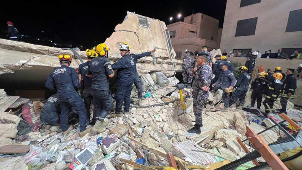 تواصل فرق الإنقاذ الأربعاء البحث عن عشرة أشخاص تحت أنقاض المبنى المنهار في عمان ما زال عدد منهم على قيد الحياة، وفق ما صرح وزير الدولة الأردني لشؤون الإعلام فيصل الشبول.