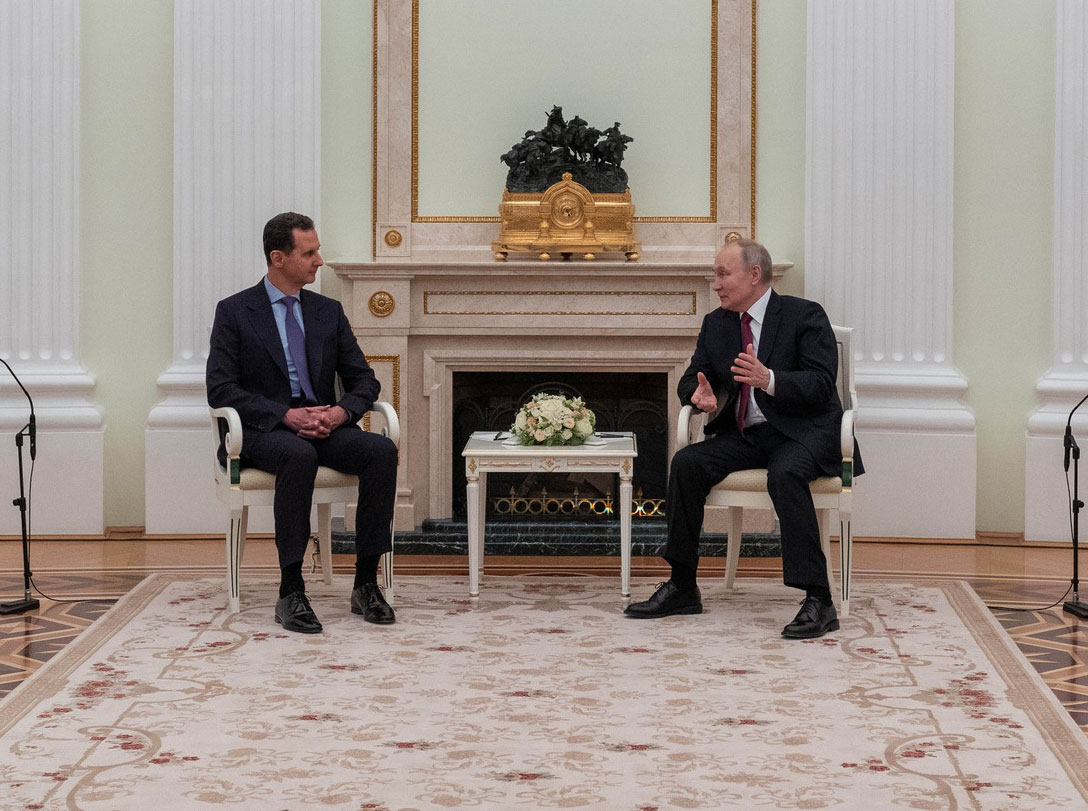 ووفق بيان رئاسي سوري عقب جلسة المباحثات التي جمعت الرئيس السوري ونظيره الروسي فلاديمير بوتين اليوم الأربعاء في موسكو، أكد الأسد أن "سوريا لطالما كانت مع الحوار إذا كان سيُفضي إلى تحقيق مصالح الشعب السوري ووحدة وسلامة الأراضي السورية، ويصل إلى نتائج واضحة ومحددة وعلى رأسها الاستمرار بمكافحة الإرهاب وخروج القوات الأجنبية غير الشرعية الموجودة على أراضيها".
