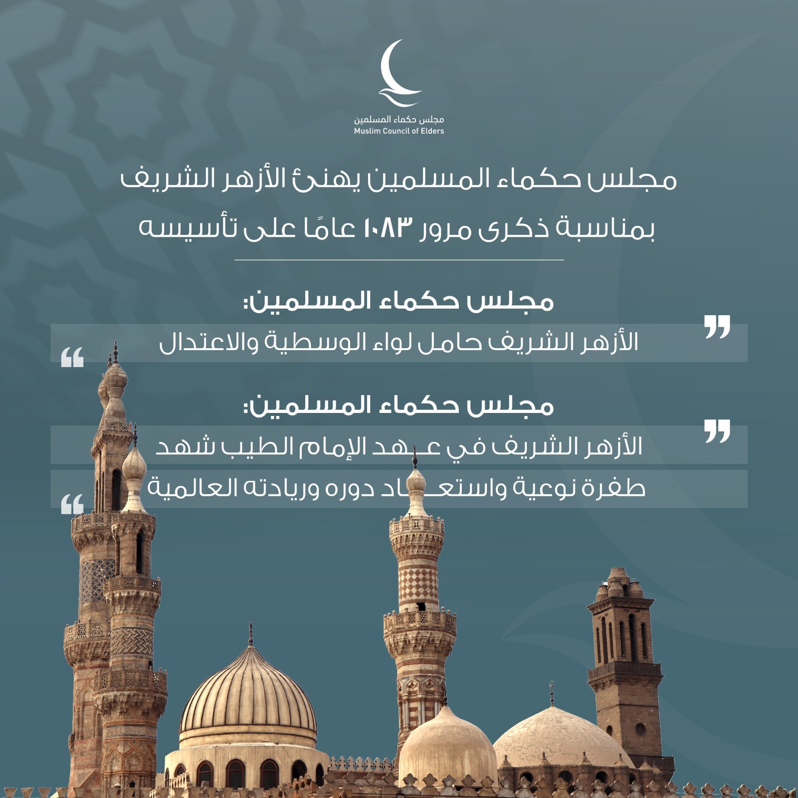 أكد مجلس حكماء المسلمين أن الأزهر الشريف كان وسيظل منارة العلم والعلماء في العالم الإسلامي، وحامل لواء الوسطية والاعتدال في كافة ربوع العالم.