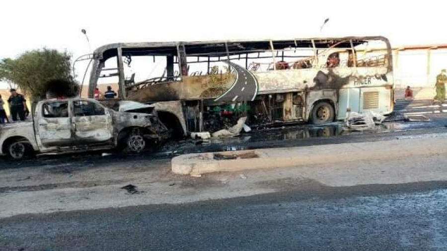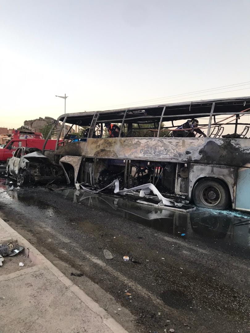 ووقع الحادث بين حافلة لنقل المسافرين وسيارة "بيك أب" معبأة بالوقود.