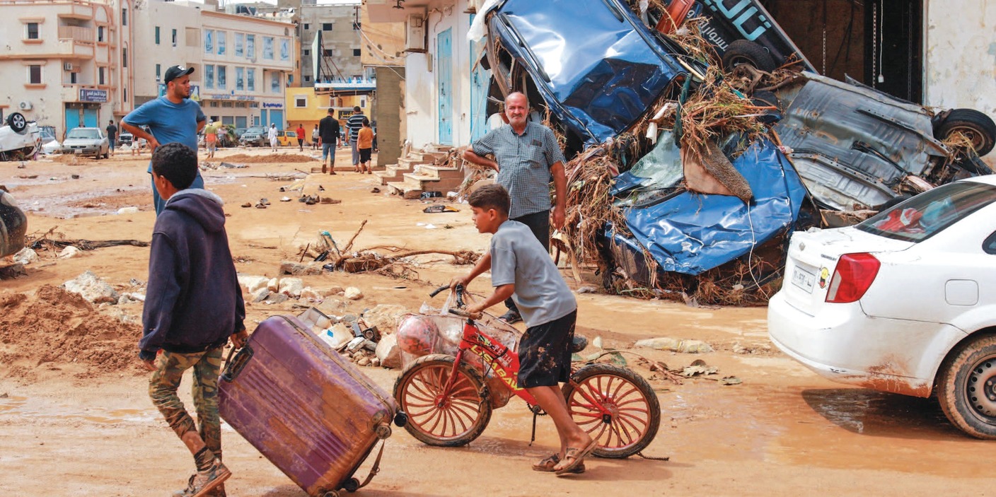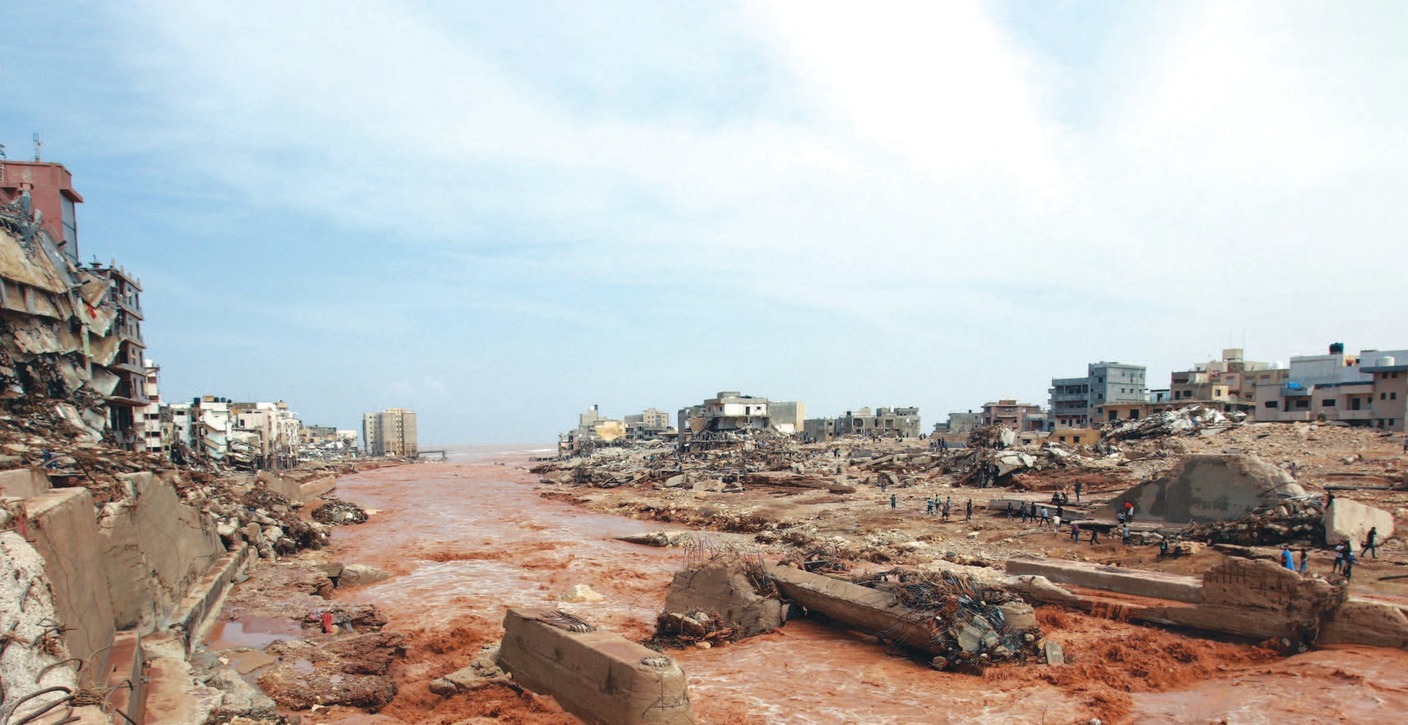 أدت السيول الناجمة عن عاصفة «دانيال» العاتية إلى انهيار سدود وجرف مبانٍ وتدمير ربع مدينة درنة الواقعة في شرق ليبيا، وسط مخاوف من فقد ما لا يقل عن عشرة آلاف شخص.