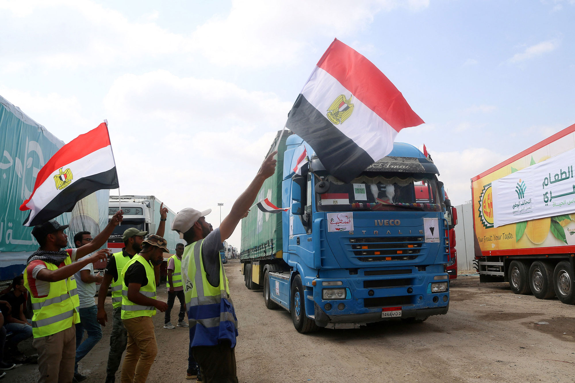 دخلت الأحد قافلة جديدة من شاحنات الإغاثة من مصر الى قطاع غزة حيث سجل مقتل عشرات المدنيين الاضافيين مع تكّثّيف إسرائيل ضرباتها تمهيدا لعملية برية، مع دخول الحرب بين حركة حماس وإسرائيل أسبوعها الثالث.
