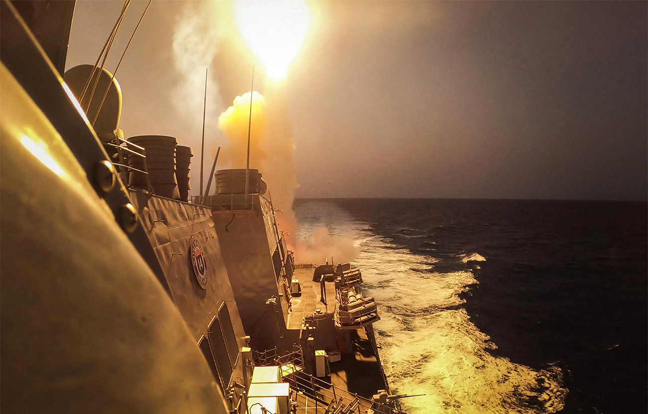 وتعرضت عدة سفن في البحر الأحمر لهجمات من قبل جماعة الحوثي التي تقول إن الهجمات تأتي رداً على الحرب الإسرائيلية على قطاع غزة. وأدت هجمات الحوثيين إلى تعطيل حركة الشحن العالمية، ما أجبر الشركات على القيام برحلات أطول وأكثر تكلفة حول الطرف الجنوبي لأفريقيا. وتوجه الولايات المتحدة وبريطانيا ضربات جوية على مواقع للحوثيين بهدف تعطيل وإضعاف قدرات الجماعة على تعريض حرية الملاحة للخطر وتهديد حركة التجارة العالمية.