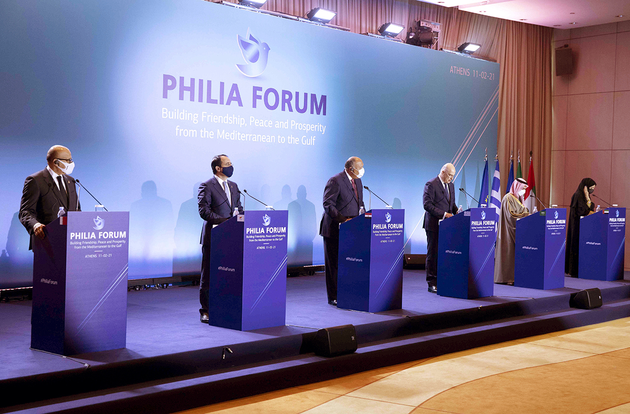 جاء ذلك خلال مشاركة معالي ريم بنت إبراهيم الهاشمي وزيرة دولة لشؤون التعاون الدولي في فعاليات «منتدى فيليا 2021»، الذي عقد في العاصمة اليونانية أثينا، أمس، لبحث التطورات والقضايا الإقليمية في المنطقة وفي منطقة شرق البحر الأبيض المتوسط، على مستوى وزراء خارجية كل من المملكة العربية السعودية ومملكة البحرين وجمهورية مصر العربية وجمهورية اليونان وجمهورية قبرص وجمهورية فرنسا.