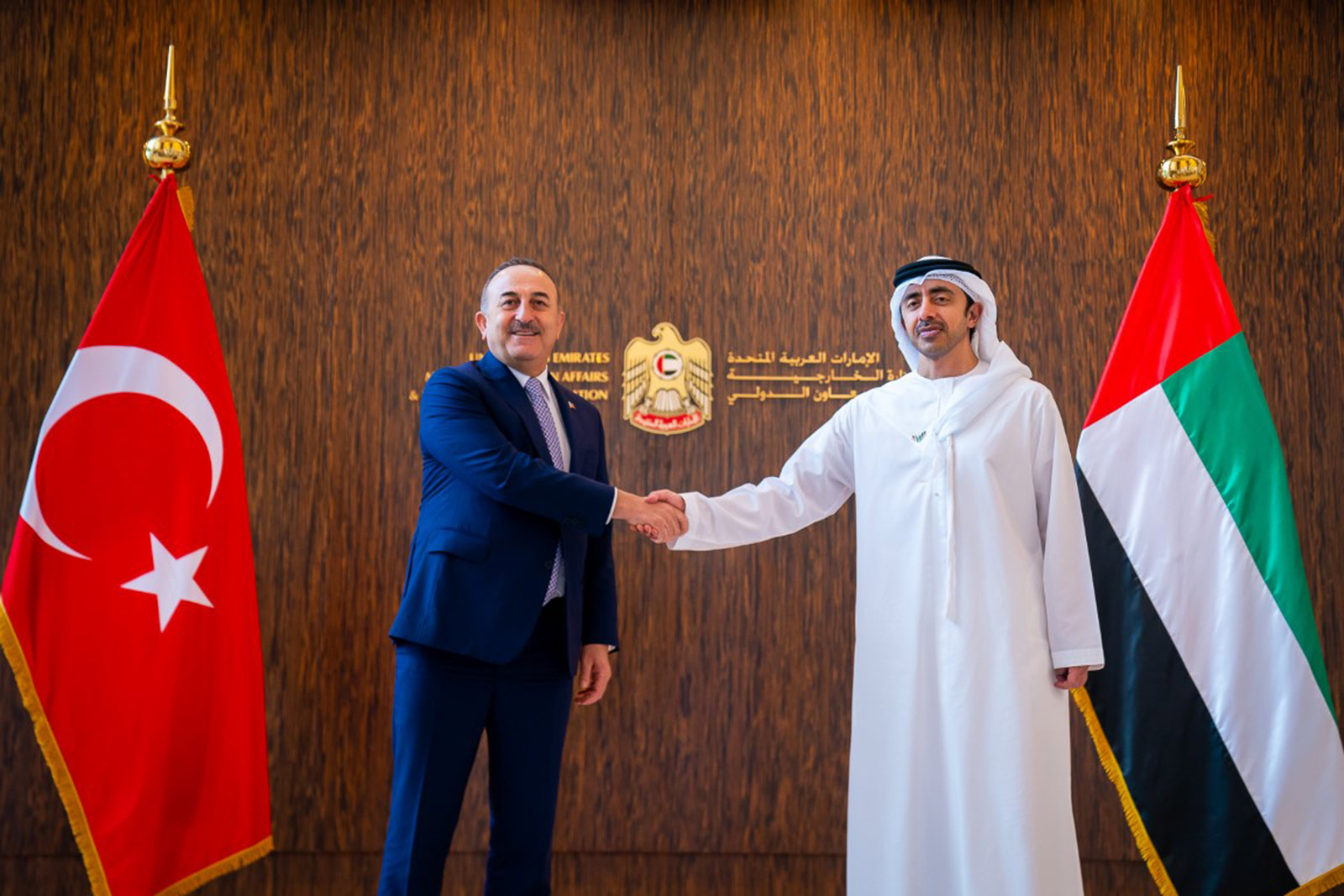عقب ذلك، عقد سموه ومولود تشاووش أوغلو جلسة مباحثات على غداء عمل في قصر الإمارات بأبوظبي، جرى خلالها بحث العلاقات الثنائية ومسارات التعاون المشترك الإماراتي التركي وسبل تعزيزه بما يخدم مصلحة البلدين ويعود بالخير على شعبيهما.