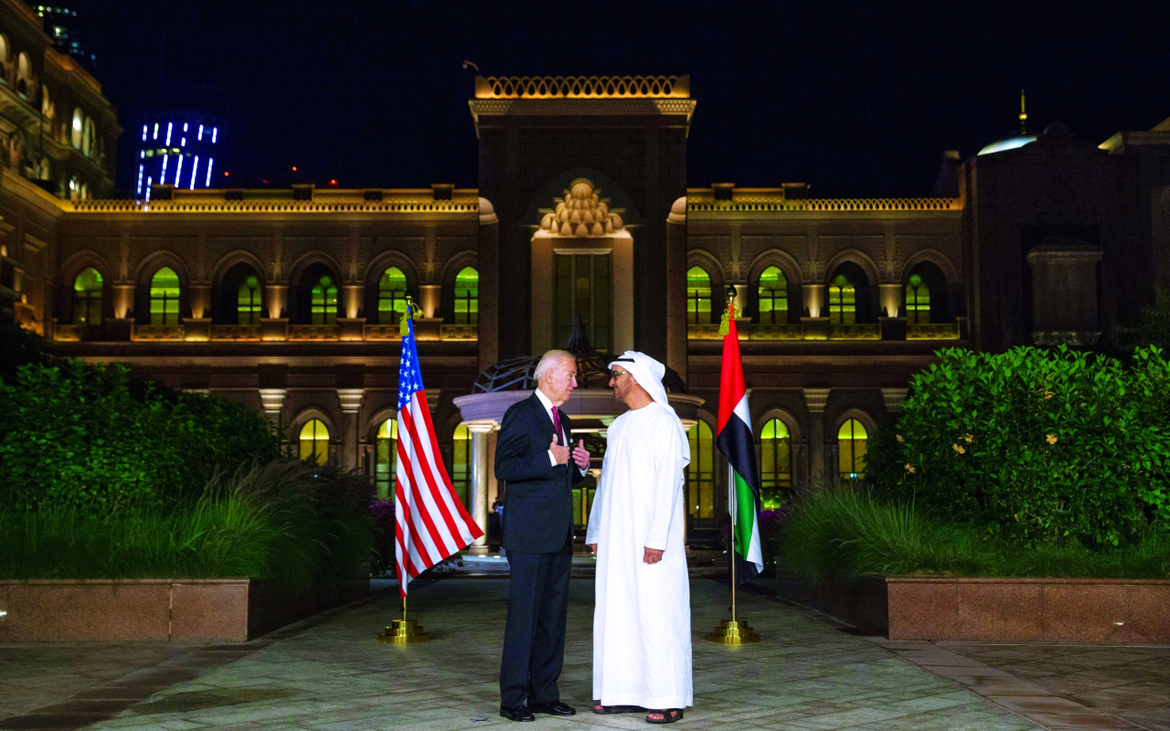 في ذلك اللقاء، تناول سموه رؤية الإمارات نحو عالم عربي مستقر وآمن يتطلع إلى المستقبل بتفاؤل وإيجابية، وأن هذه الرؤية تتطلب عملاً مشتركاً وجاداً للخروج من الأزمات التي تهدد المنطقة. وأكد صاحب السمو الشيخ محمد بن زايد آل نهيان لبايدين، الحرص المشترك على ضمان أمن منطقة الخليج العربي واستقرارها؛ بصفتها ذاتَ أهمية استراتيجية بالنسبة إلى العالم كلِّه.