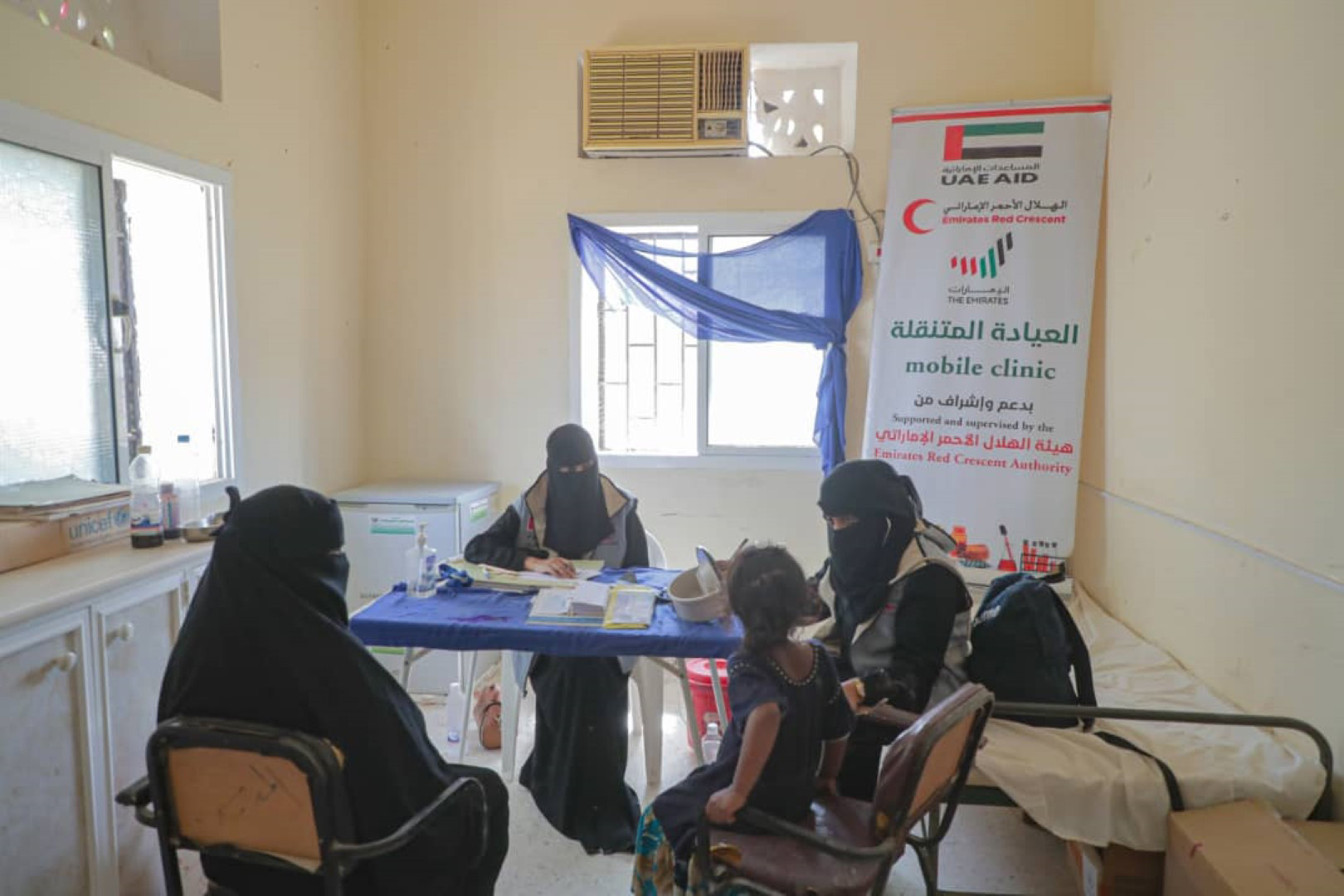 وتضم العيادة الطبية المتنقلة، طبيب عام و دكتورة أمراض نساء وولادة، وثلاثة ممرضين وصيدلي، و فني مختبرات ، إلى جانب المستلزمات الصحية و خدمات الاستشارة الطبية وتقديم الدواء مجاناً.
