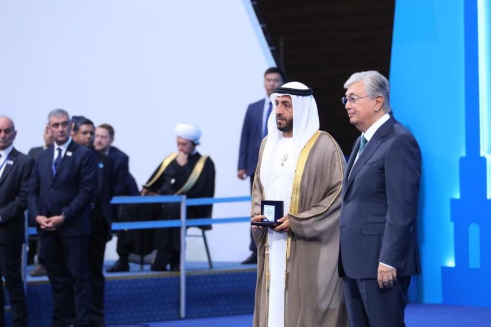 منح قاسم جومارت توقايف رئيس جمهورية كازاخستان، اليوم، الدكتور محمد مطر سالم الكعبي، رئيس الهيئة العامة للشؤون الإسلامية والأوقاف، «جائزة أستانا الدولية»، التي تعد إحدى أرفع الجوائز في منطقة آسيا الوسطي لمساهمته في مجال الحوار بين أتباع الأديان ونشر ثقافة الأخوة والسلام العالمي.