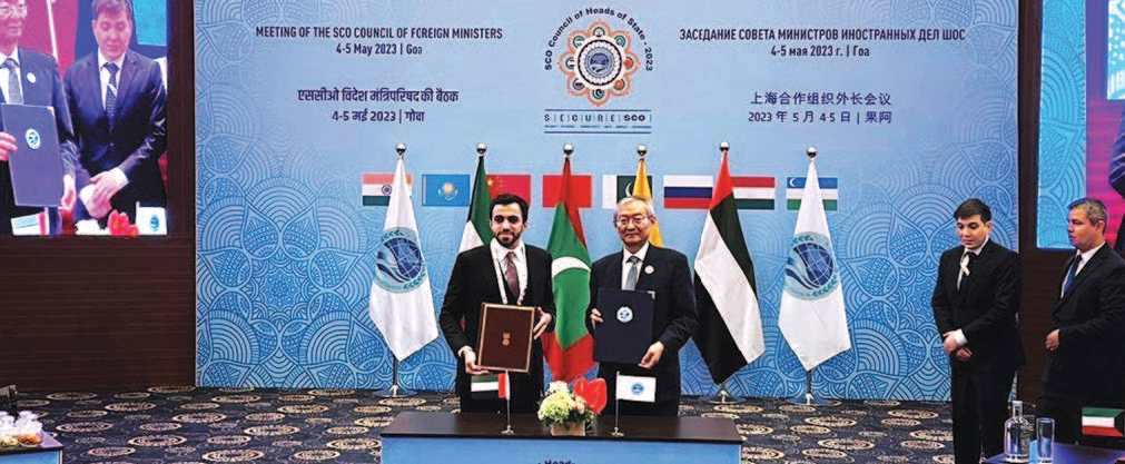 مُنحت دولة الإمارات رسمياً صفة «شريك حوار» في منظمة شنغهاي للتعاون، وذلك على هامش اجتماع مجلس وزراء خارجية المنظمة، الذي عُقد في غوا بجمهورية الهند يومي 4 و5 مايو 2023، حيث تُوّجت مشاركة دولة الإمارات بالتوقيع على مذكرة تفاهم للانضمام إلى الرابطة بصفتها شريك حوار.