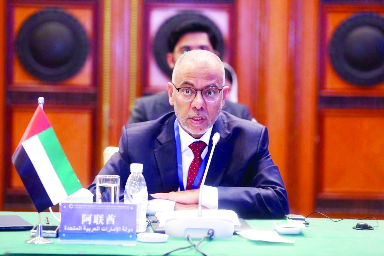 وأكد المزروعي في كلمة دولة الإمارات العلاقات التاريخية التي تربط الإمارات بجمهورية الصين الشعبية، القائمة على الشراكة الاستراتيجية الشاملة والتي شهدت تطوراً كبيراً في المجالات كافة ولا سيما الاقتصادية والتجارية، مشيراً إلى أن دولة الإمارات تعد الشريك التجاري الأول للصين عربياً وخليجياً كما تعد الصين الشريك التجاري الأول عالمياً لدولة الإمارات خلال عام 2021.