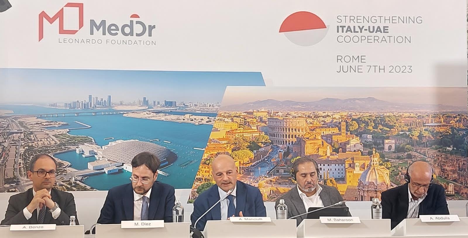 جاء ذلك خلال ورشة عمل نظمتها مؤسسة «ميد أور» الإيطالية للبحوث في روما عن سبل تعزيز التعاون الإيطالي الإماراتي، بمشاركة عدد من المسؤولين الحكوميين رفيعي المستوى من كلا البلدين، إضافة إلى أكاديميين وخبراء.