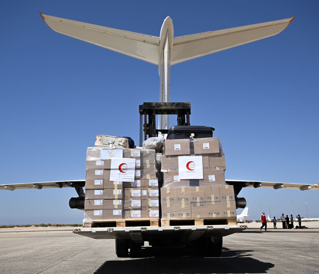 كما يقف فريق الهلال الأحمر الإماراتي المتواجد حاليا في المناطقة المنكوبة في الشرق الليبي على إيصال المساعدات للمتضررين، بالإضافة إلى تقييم الأوضاع الميدانية ودراسة الاحتياجات الفعلية الراهنة لتوفير المزيد منها عبر رحلات الجسر الجوي المتواصلة.