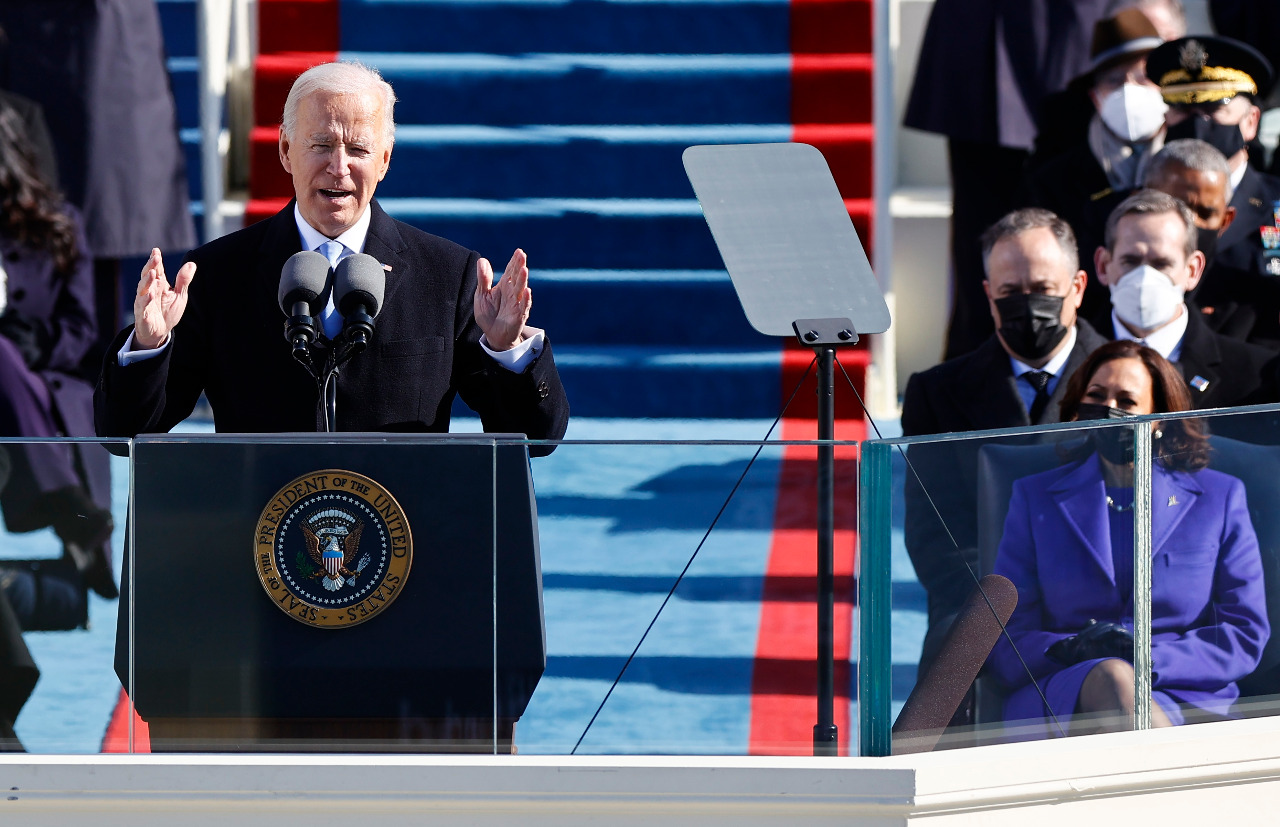 أعلن جو بايدن، في خطابه الأول كرئيس للولايات المتحدة، أن "الديمقراطية انتصرت" وأشاد بالتداول السلمي للسلطة، على الرغم من العنف في مبنى الكابيتول في وقت سابق من هذا الشهر.