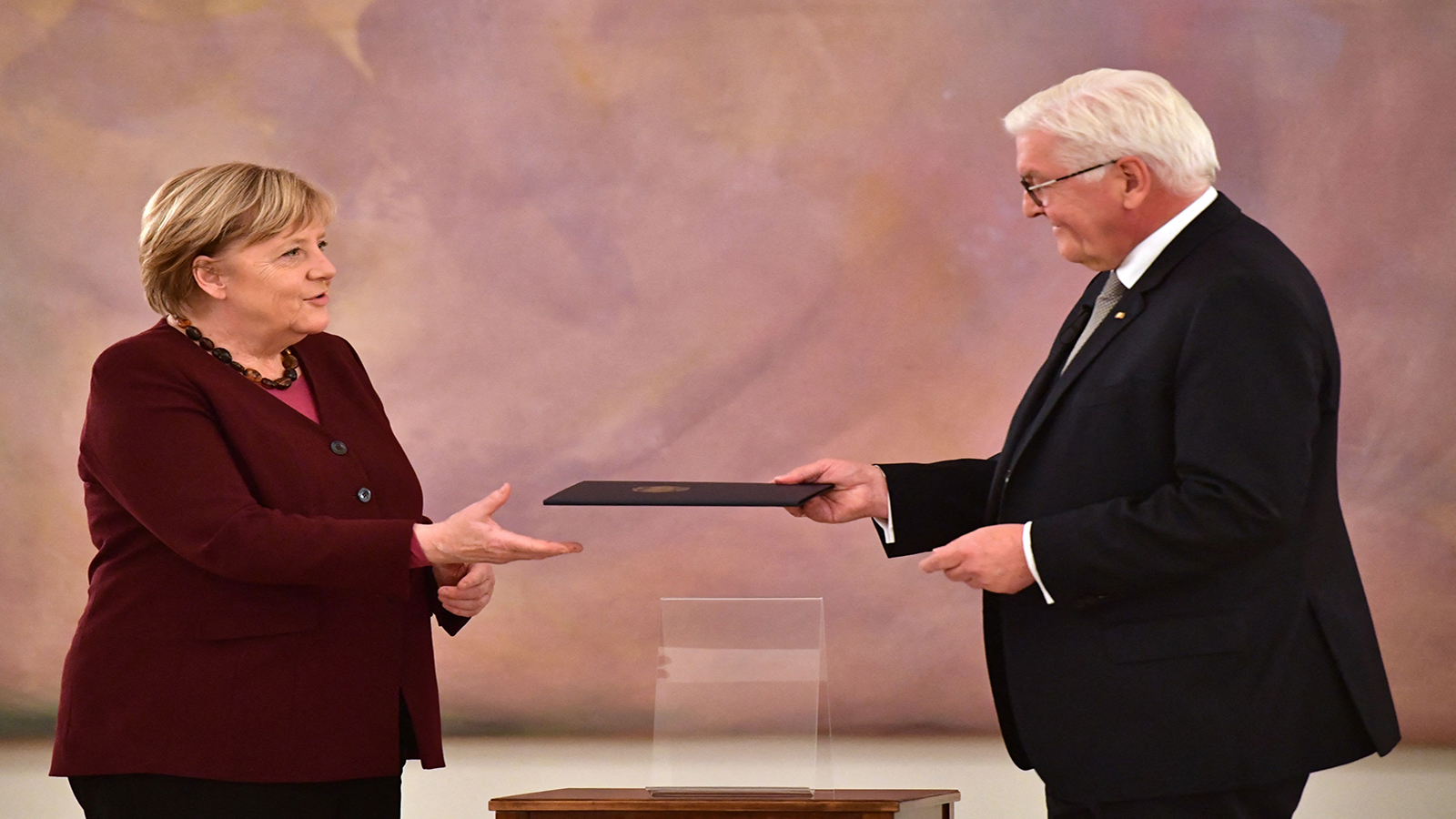 سلم الرئيس الألماني فرانك-فالتر شتاينماير المستشارة الألمانية أنغيلا ميركل ووزراء الحكومة وثائق الإعفاء من مناصبهم (التي تعد بمثابة شهادات بتأدية الواجب)، بحسب قناة "دي دبليو" الألمانية