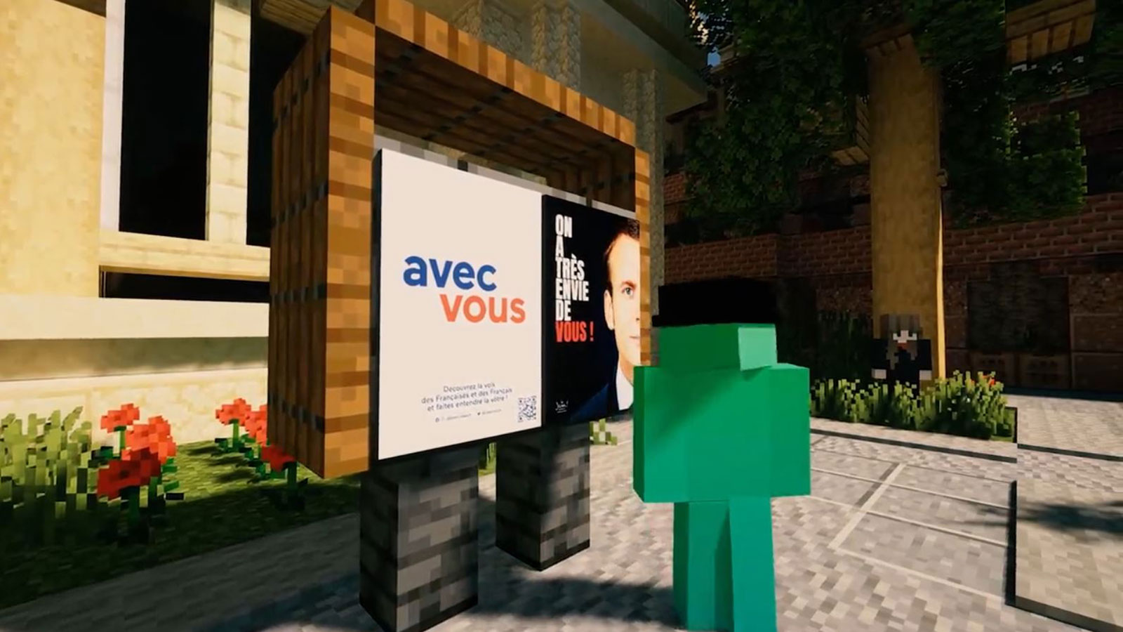 لم ينسَ فريق الرئيس ما لا يقل عن 24 مليون مستخدم لماينكرافت في فرنسا. هناك حيث لا يوجد شيء أفضل من لعبة البناء المجانية لخلق إمبراطوريتك وبيع الأحلام ولمواجهة الوحوش والاستكشاف. ونشروا مشهدا مصورا يظهر "مدينة افتراضية كاملة متكاملة".