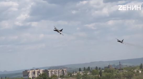 وأظهر الفيديو طائرتين عسكريتين وهما تحلقان على ارتفاع منخفض فوق دونباس، فيما ظهرت مجموعة من الصواريخ وهي تحاول استهدافهما وفق سكاي ينوز.