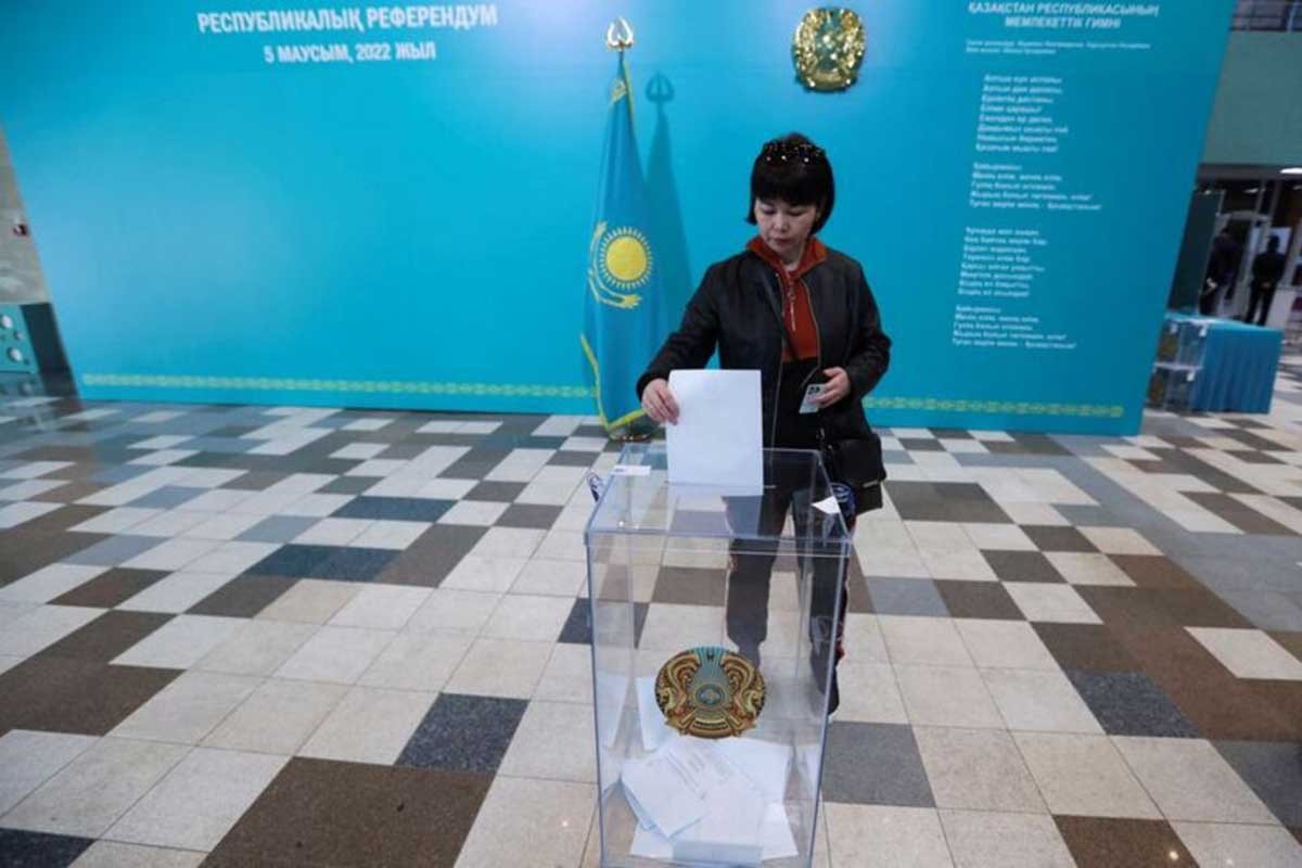 وقالت المفوضية إن 77.18 في المئة من المصوتين في استفتاء الأحد أيدوا التعديلات التي تزيل مركزية صنع القرار وتجرد الزعيم السابق نور سلطان نزارباييف من مكانته "كزعيم وطني". وبلغت نسبة المشاركة 68.06 في المئة.