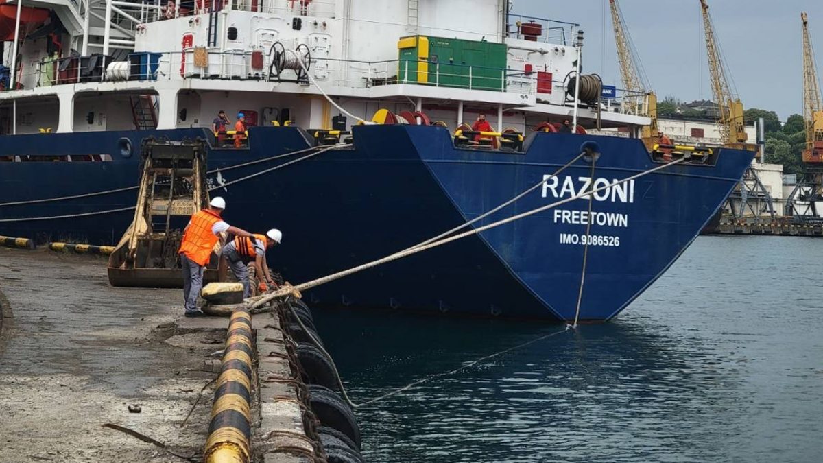 وقال وزير البنى التحتية الأوكراني أولكسندر كوبراكوف إن الباخرة محملة 26 ألف طن من الحبوب.