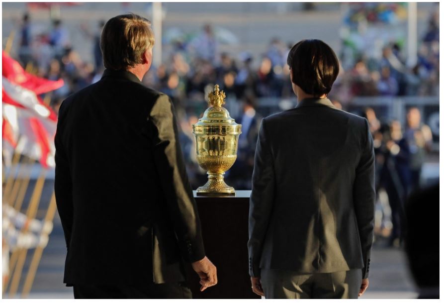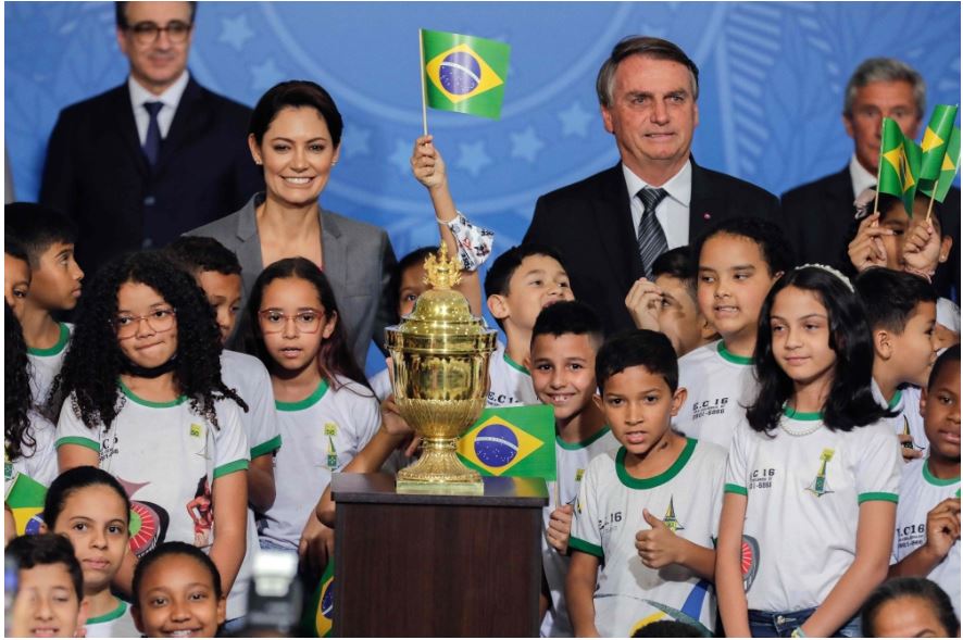 واستقبل الرئيس البرازيلي جايير بولسونارو وزوجته ميشيل الرفات التي يبلغ عمرها 187 عامًا وحملها قائد شرطة مدينة بورتو البرتغالية أنطونيو ليتاو دا سيلفا، في قصر بلانالتو الرئاسي.