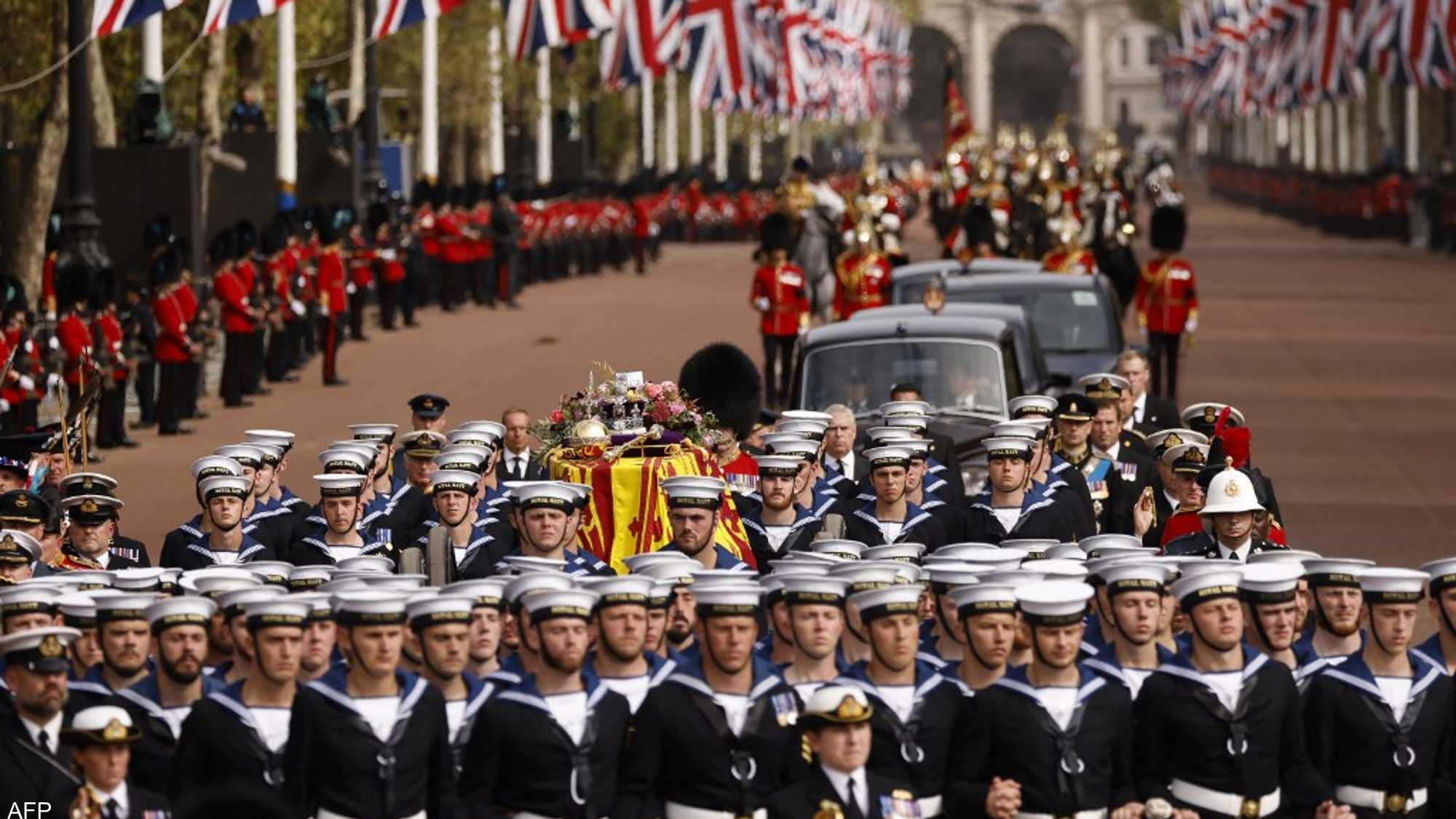 ولديها أيضا نحو 2868 قطعة ألماس، إلى جانب 17 ياقوتة و11 زمردة و269 لؤلؤة تتألق في تاج "إمبريال ستيت" الذي استقر على نعش الملكة.