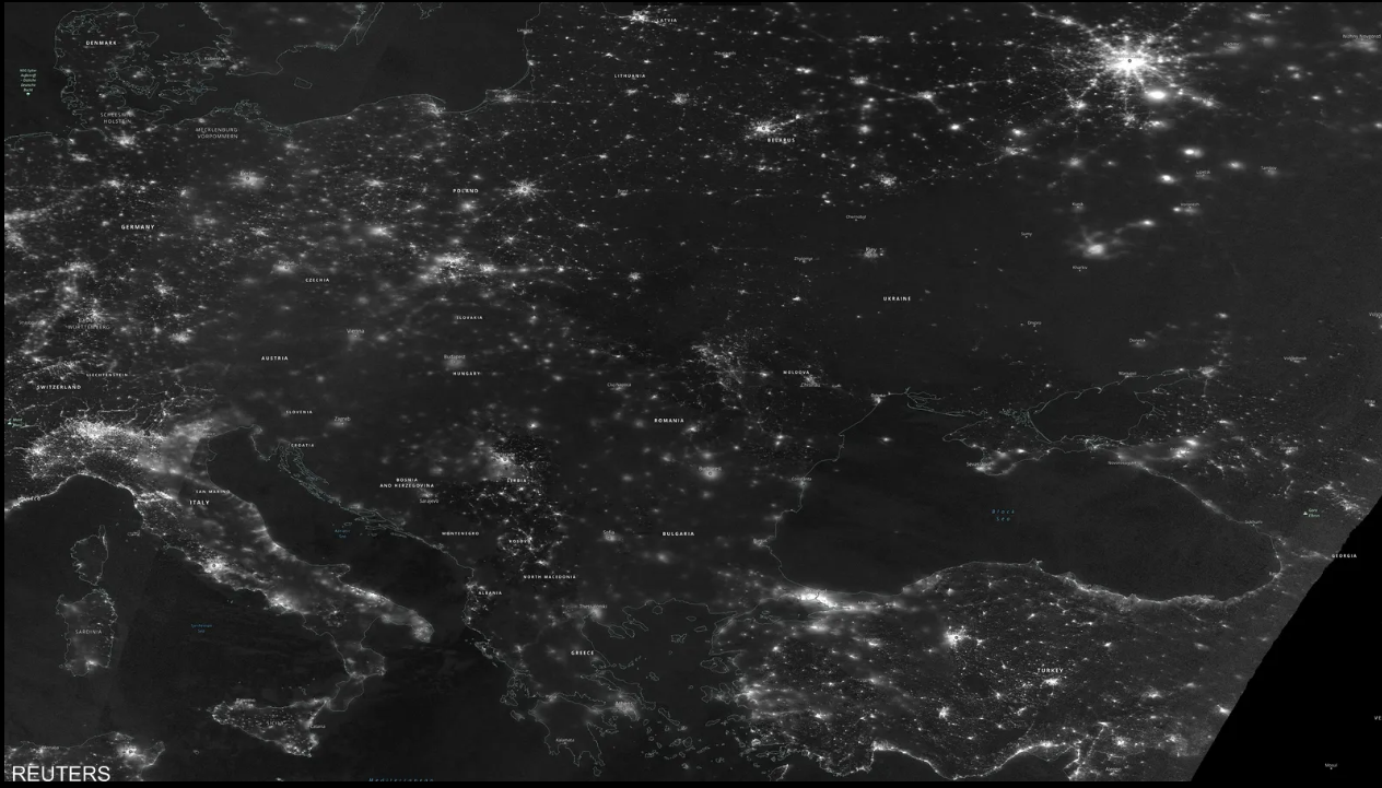تظهر أوكرانيا من الفضاء ليلا كبقعة مظلمة على الكرة الأرضية.