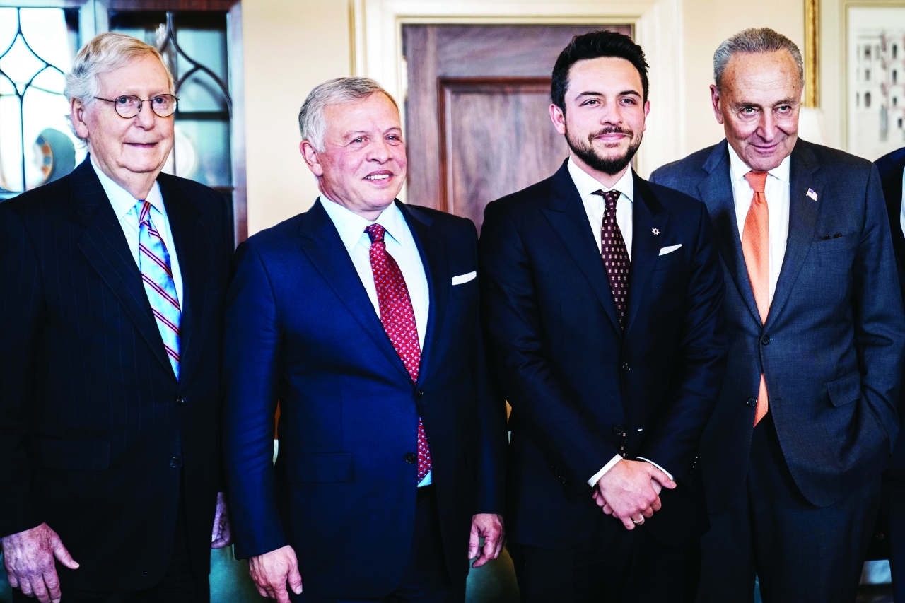 التقى العاهل الأردني الملك عبدالله الثاني، في العاصمة الأمريكية واشنطن، قيادات مجلس الشيوخ الأمريكي من الحزبين الديمقراطي والجمهوري، حيث شدد على ضرورة وقف التصعيد بالمنطقة وأهمية الدفع لتوفير أفق سياسي يمهد الطريق لإعادة إحياء عملية السلام على أساس حل الدولتين.