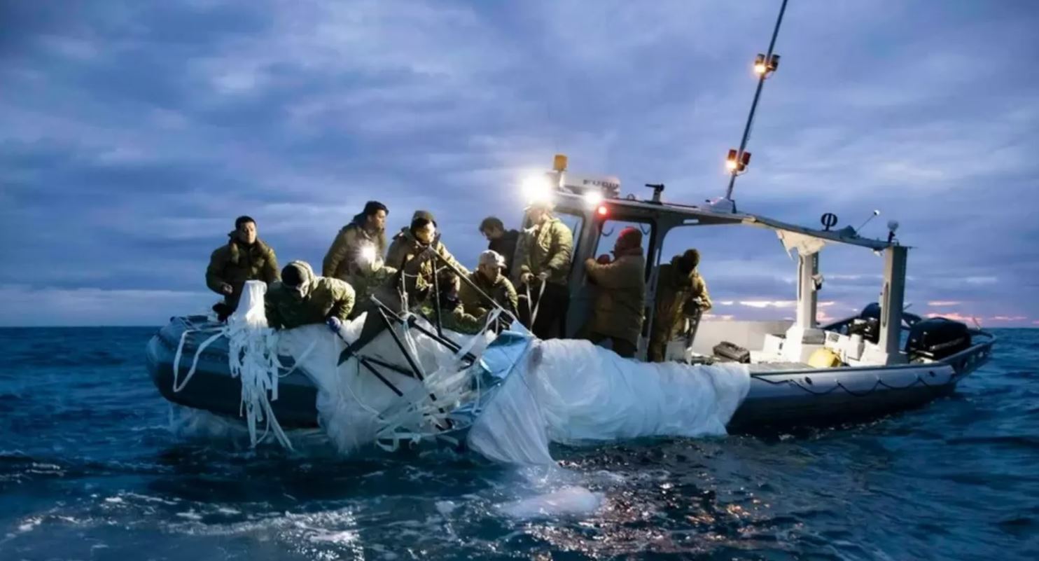 وتنفذ البحرية الأمريكية عملية مكثفة لجمع كل قطع المنطاد باستخدام طائرات مسيرة وسفن حربية وقوارب لجمع كل قطع المنطاد الصيني الضخم.