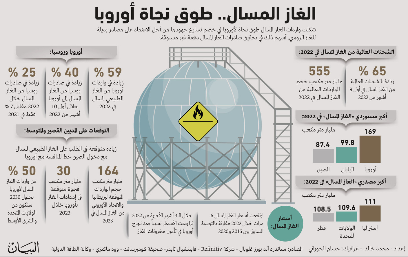 واعتبر محللون أن الغاز المسال شكّل عملياً «طوق نجاة» لدول القارة العجوز في ظل نقص الإمدادات الواردة إلى أوروبا عبر الأنابيب من روسيا، وبما ساعد البلدان الأوروبية على تأمين احتياجاتها من الطاقة خلال الشتاء الجاري وجنبها سيناريوهات شديدة الصعوبة.