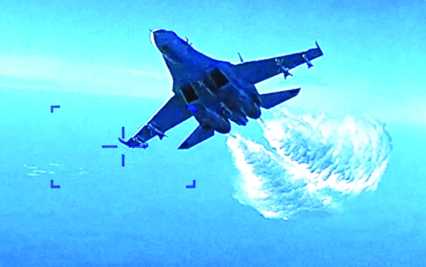 نشرت وزارة الدفاع الأمريكية «البنتاغون»، أمس، لقطات لطائرة روسية تقوم باعتراض غير آمن لطائرة استطلاع دون طيار، تابعة للقوات الجوية الأمريكية فوق البحر الأسود.