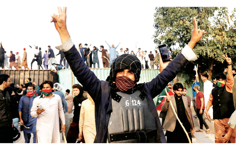 وبعد أيام من الجدل القانوني، قطع خان أكثر من 300 كيلومتر من لاهور إلى مجمع المحاكم في إسلام أباد، ولكنه لم يتمكن من الخروج من السيارة، حيث تجمع عدد كبير من أنصاره حول المجمع ورشقوا الحجارة على عناصر الشرطة الذين ردوا بإطلاق الغاز المسيل للدموع.