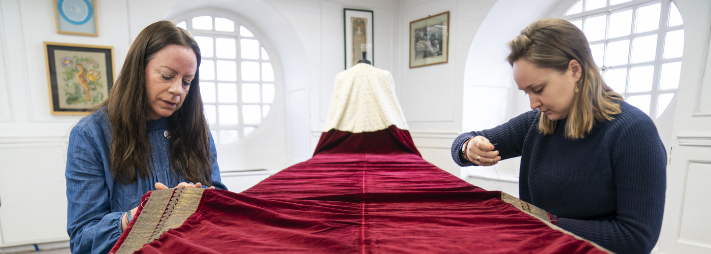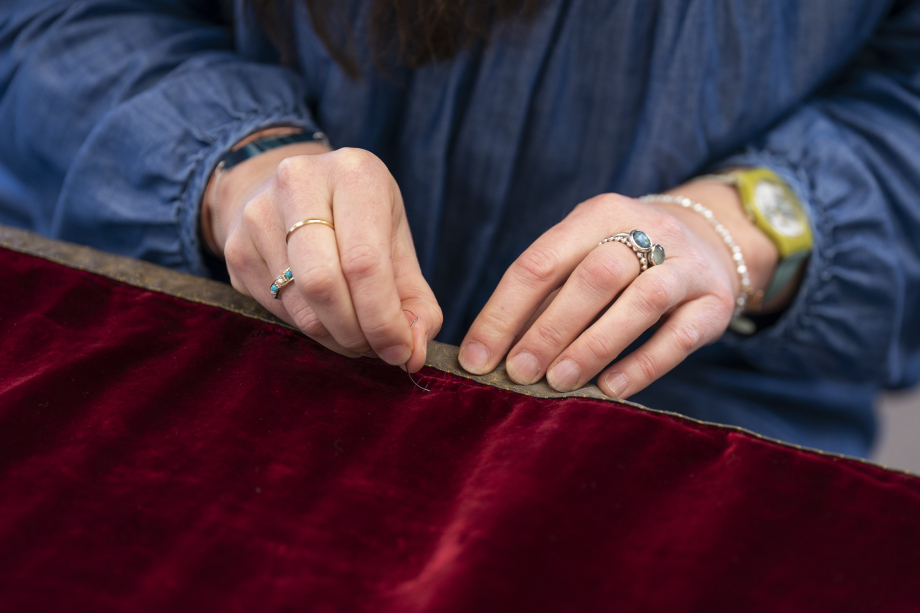 وأظهرت الصور التي نشرها القصر أعضاء من المدرسة الملكية للتطريز وهم يقومون بأعمال على ثوب مخملي قرمزي بطول عدة أقدام مع حواف من الدانتيل الذهبي من المقرر أن يرتديه تشارلز.