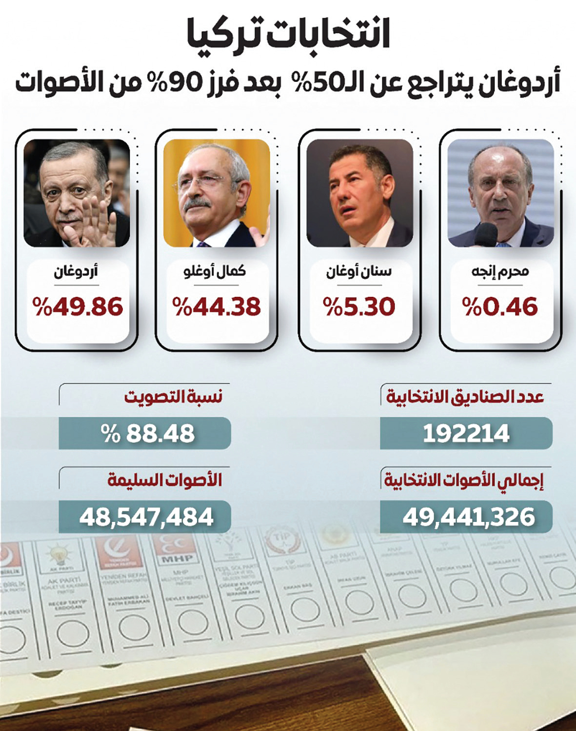 ـــ الانتخابات التركية تتجه للإعادة بين أردوغان وأوغلو