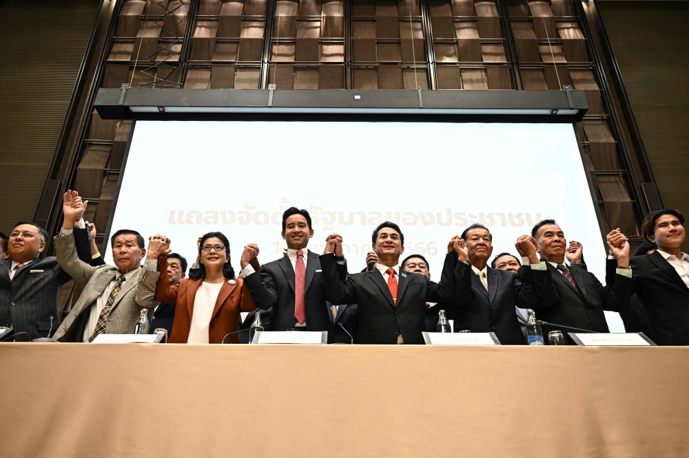 ويضم الائتلاف إلى جانب حزب «إلى الأمام» 152 مقعداً، خصوصاً حركة بيو تاي (141) المرتبطة برئيس الوزراء السابق المقيم في المنفى، ثاكسين شيناواترا، الذي أعلن انضمامه منذ الاثنين غداة الانتخابات. وقد لا يكون الحصول على غالبية برلمانية في تايلاند كافياً لتشكيل حكومة بسبب مشاركة 250 من أعضاء مجلس الشيوخ يعينهم الجيش في التصويت لاختيار رئيس للوزراء المرتقب. وأعرب العديد من أعضاء مجلس الشيوخ عن معارضتهم للبرنامج التقدمي الذي طرحه حزب «إلى الأمام»، معتبرين أنّه راديكالي، لا سيما اقتراحه إصلاح قانون يقمع إهانة الذات الملكية.