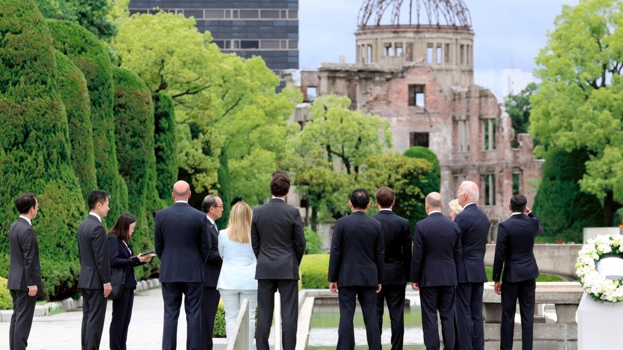 ووضع قادة مجموعة السبع وبينهم الرئيسان الأمريكي، جو بايدن، والفرنسي، إيمانويل ماكرون، أكاليل ورود على النصب التذكاري لحوالى 140 ألف شخص قتلوا في القنبلة الذرية الأمريكية في السادس من أغسطس 1945، وزاروا متحف النصب التذكاري للسلام الشاهد على رعب القصف الذري.