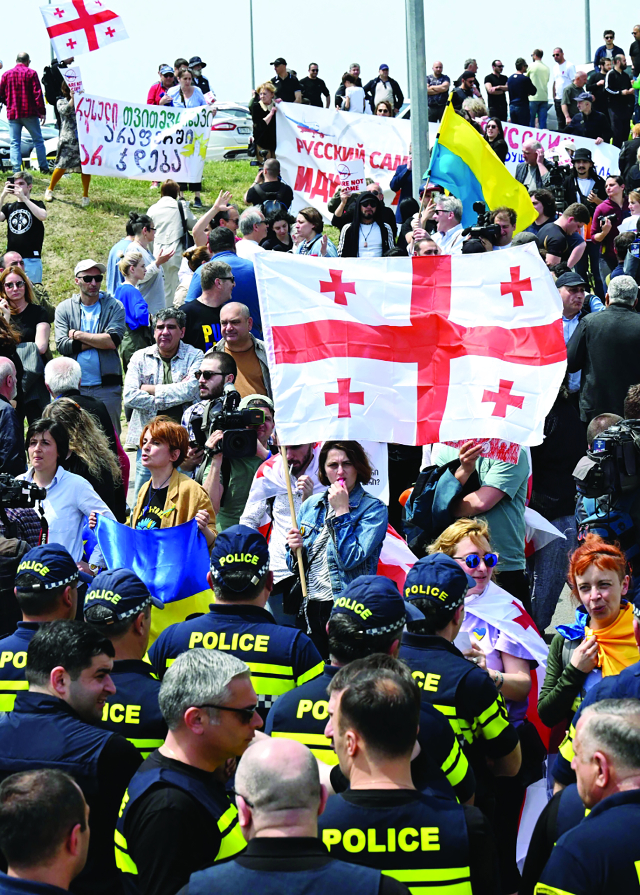 احتج عشرات الجورجيين، أمس، أمام مطار تبليسي مع وصول طائرة ركاب روسية للمرة الأولى منذ 2019.