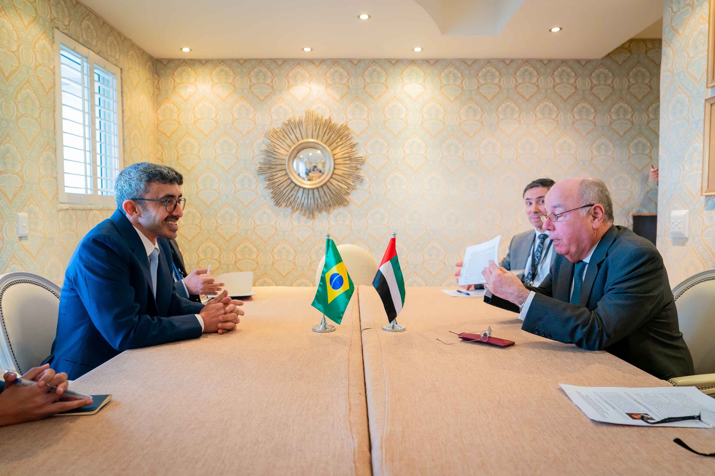 وتم خلال اللقاء بحث علاقات الصداقة وسبل تعميق الشراكة الاستراتيجية بين دولة الإمارات والبرازيل في المجالات كافة، ومنها الاقتصادية والتجارية والاستثمارية والطاقة المتجددة والعمل المناخي.