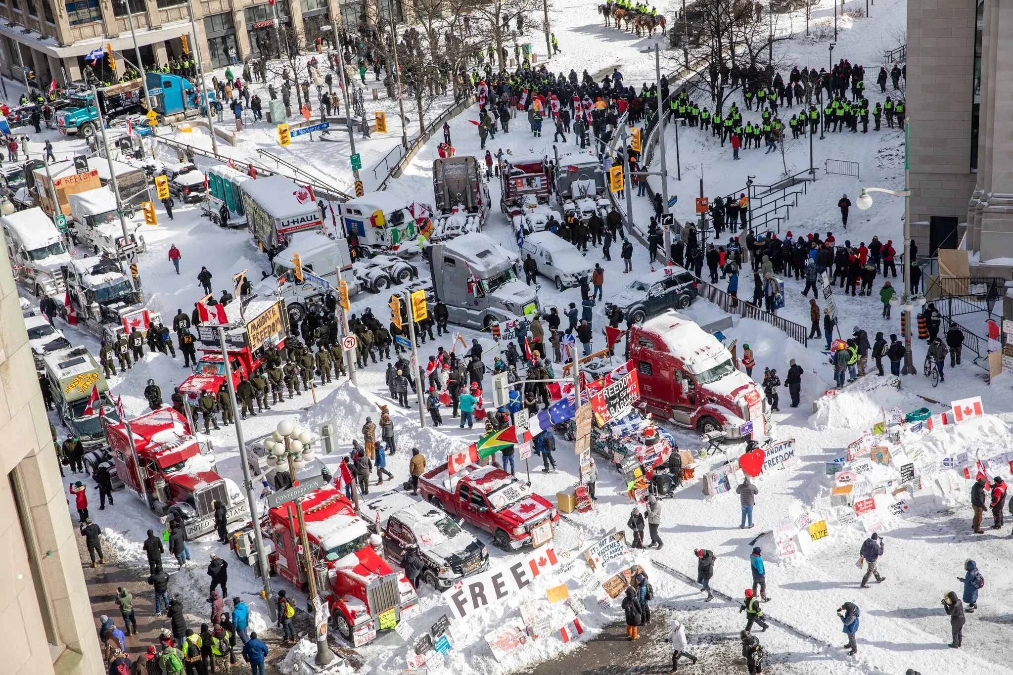 وتقاطرت الشاحنات المشاركة في "قافلة الحرية" من جميع أنحاء كندا إلى أوتاوا أوائل عام 2022 للتعبير عن الرفض لإلزامية لقاحات كوفيد.