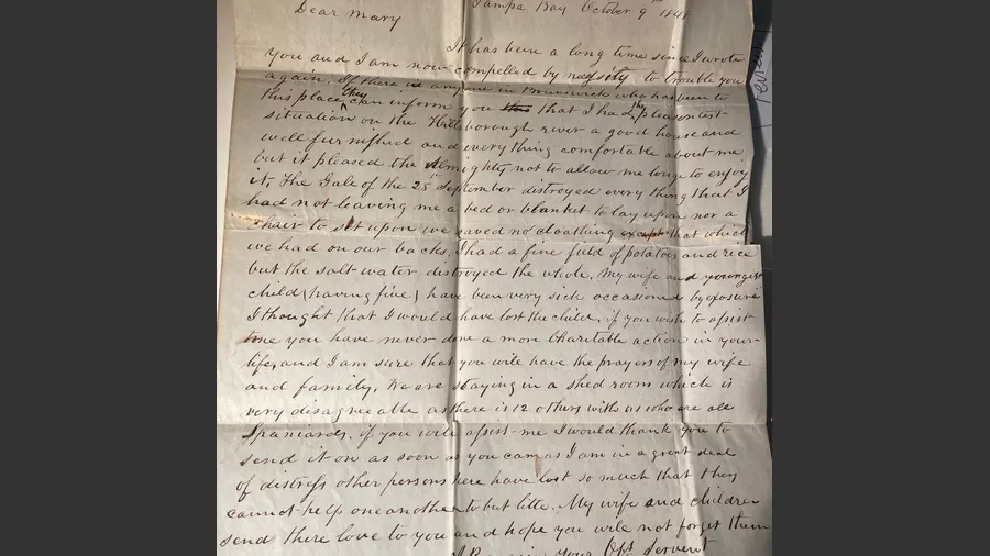 وهذه الرسالة التي بعث بها روبرت جاكسون لشقيقته، والتي اكتشفها حفيد حفيده ديفيد باركلي، داخل صندوق يحتوي على تذكارات العائلة، تقدم نظرة فاحصة جديدة لهذا الإعصار، وهو أحد إعصارين ضربا خليج تامبا، بينما اجتاح الآخر مدينة تامبا عام 1921..