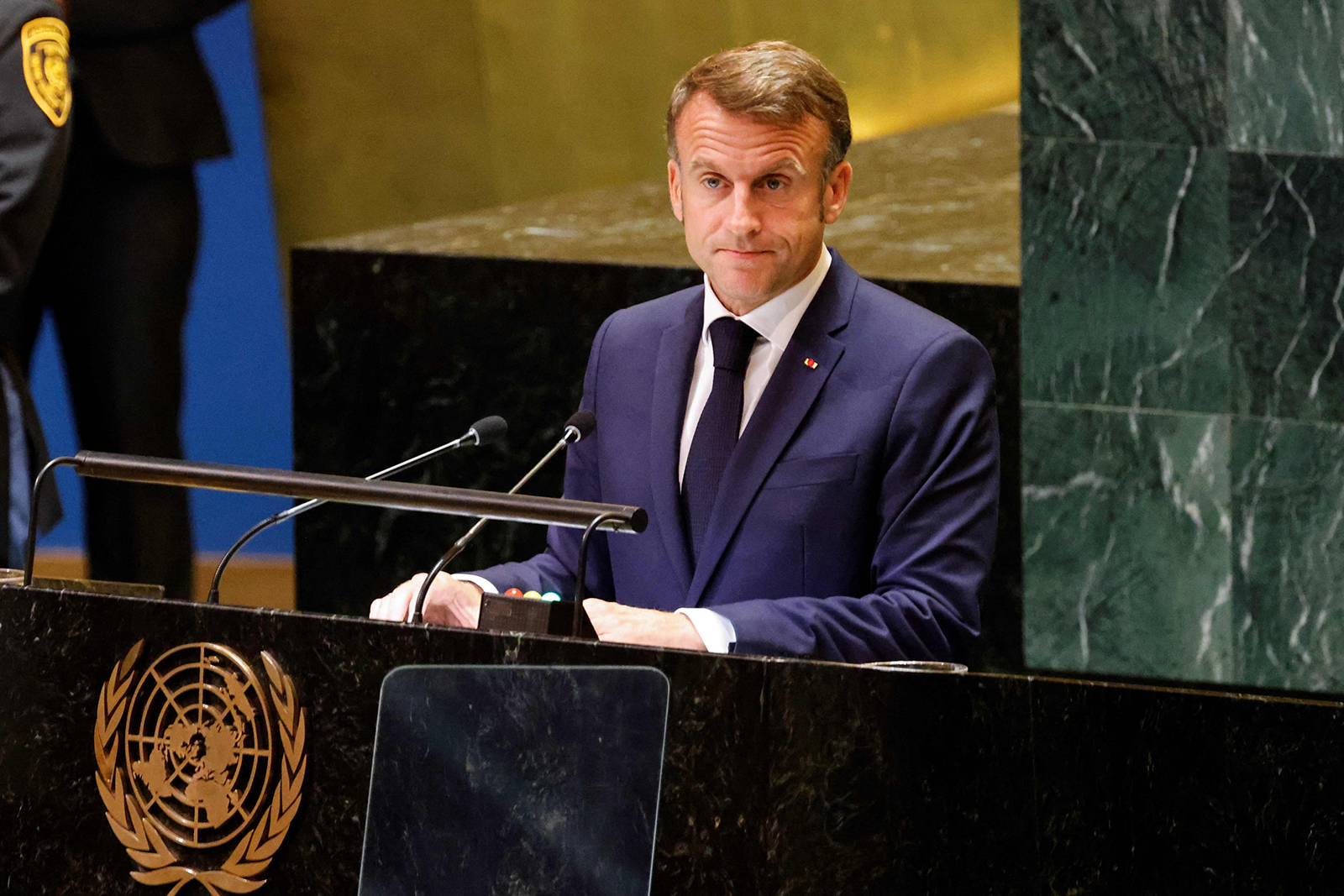 وقال ماكرون، على منبر الجمعية العامة للأمم المتحدة، إنّ "إصلاح تشكيلة مجلس الأمن وحده لا يكفي لاستعادته فعاليته. آمل تالياً أن يتيح الإصلاح أيضاً تغيير طرق العمل والحدّ من حقّ النقض في حالات القتل الجماعي، والتركيز على القرارات التنفيذية المطلوبة للحفاظ على السلم والأمن الدوليين".