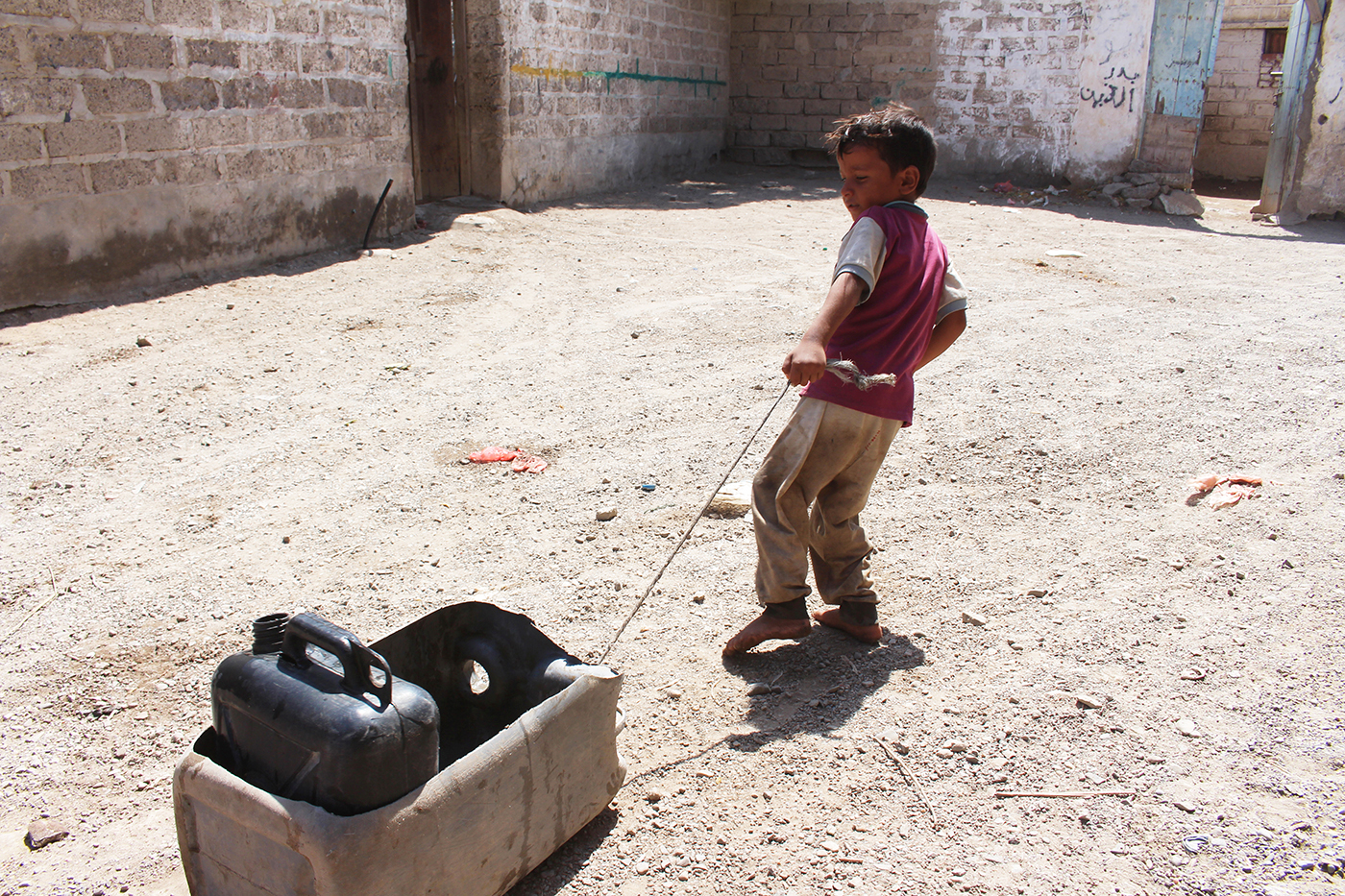 أطفال نازحون في الحديدة يتكبّدون مشاق البحث عن ماء نظيف بعد استهداف ميليشيا الحوثي للمشاريع الحيوية التي كانت تمد القرى بحاجتها من المياه.