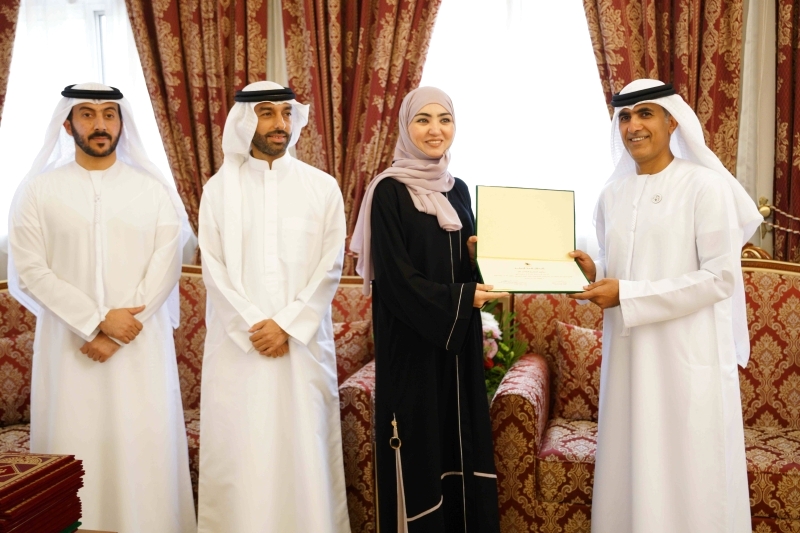 وسلم المهندس الشيخ سالم بن سلطان بن صقر القاسمي رئيس دائرة الطيران المدني في رأس الخيمة رئيس مجلس الأمناء، وفراس عزيز بن درويش الأمين العام للجائزة المكرمين شهادات التقدير.